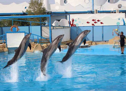 Вас встретят три дружелюбных, высоко обученных дельфина, которые не терпятся с вами познакомиться. Узнайте их по именам и наблюдайте, как они хлопают в ладоши, машут, танцуют и даже поют только для вас! Их выступление не только милое — это демонстрация интеллекта, взаимосвязи и радости, которая трогает людей всех возрастов.